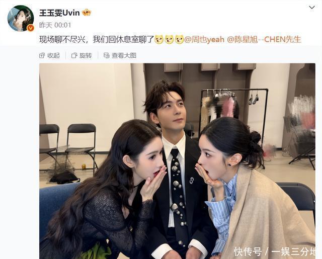 有很多粉丝还在替陈星旭抱不平,说她俩不礼貌,其实王玉雯和陈星旭早就认识,两人是校友。 人家参加完活动之后还回休息室接着聊了呢,三个人在休息室又摆起当晚的造型,没有一丝芥蒂,粉丝就别替人家生气了。