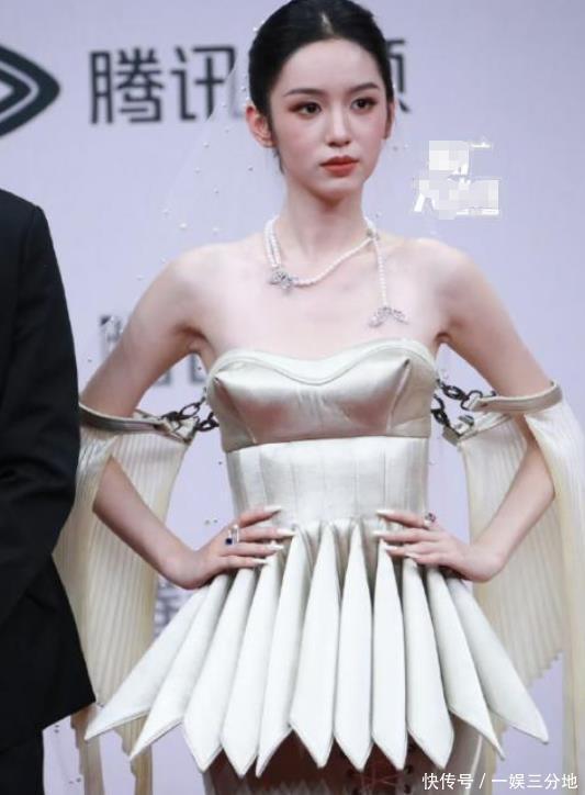 淡金色抹胸裙,上身配着像鱼尾一样的下摆,两只手上还有两块布料,像极了鱼鳍,颜值身材都在线。 但她的脸蛋还有些稚嫩,有些网友开始想象,如果是钟楚曦或者倪妮穿这套衣服会是什么样子。